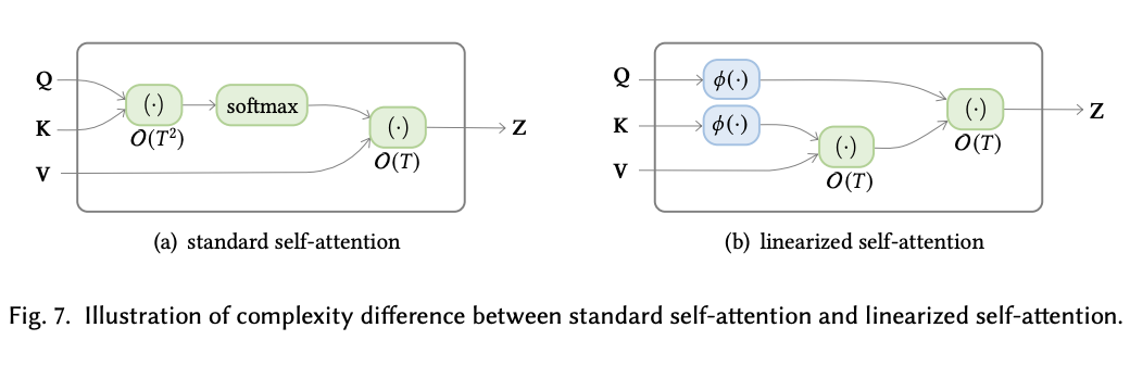 (3) Linearized attention : Kernel method 등을 이용하여 bottleneck인 matrix연산 및 softmax를 linear연산으로 줄임